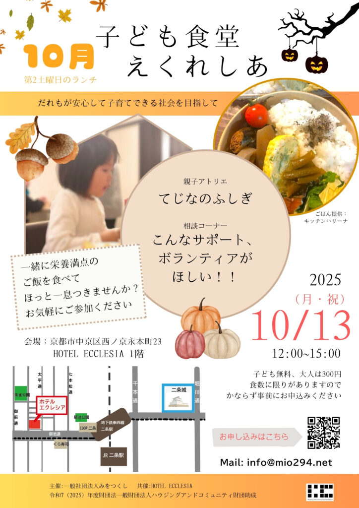 子ども食堂えくれしあ、10月13日(月曜日・スポーツの日)のランチタイムに開催します。